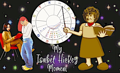 The 70s were a heady time and Anne and I hit some of the hottest astrology lekshiz around Hahvid Squeya. And we lucked into a lecture with Isabel Hickey, who singled me out for a public dissection. I was barely seventeen, so it was a mortifying intro to my intangible mechanics and a deep EUREKA! Moment.