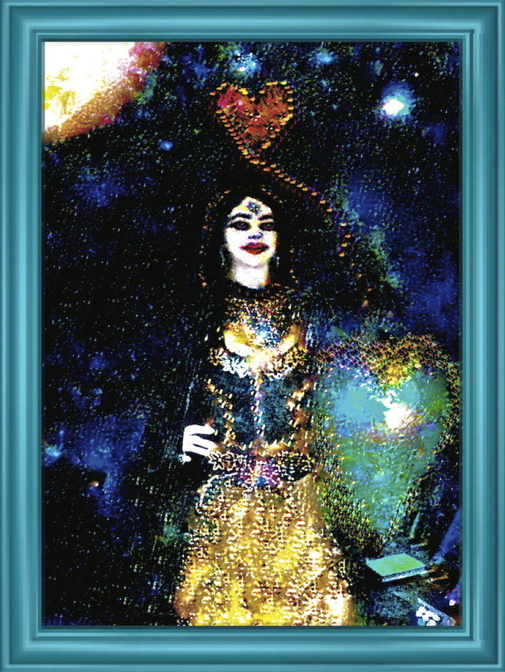 The Portrait is of my daughter Julia, who is not the person in the photo. I created her likeness without conscious awareness..
